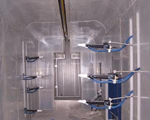自動(dòng)化噴涂設(shè)備,它解決了現(xiàn)有施工人員控制噴涂機(jī)進(jìn)行噴涂存在勞動(dòng)強(qiáng)度大、效率低、人數(shù)多,涂層質(zhì)量不穩(wěn)定,均勻性差,浪費(fèi)涂料等的問題。我們?nèi)鸹O(shè)計(jì)制造的自動(dòng)化噴涂設(shè)備,包括能夠在地面上行駛的機(jī)動(dòng)車和懸掛在機(jī)動(dòng)車尾部的自動(dòng)化橫移噴涂裝置,在機(jī)動(dòng)車上設(shè)有控制機(jī)動(dòng)車縱向勻速移動(dòng)和控制自動(dòng)化橫移噴涂裝置橫向噴涂的控制系統(tǒng)。使用該設(shè)備能顯著減少用工人數(shù)、噴涂效率高;噴涂質(zhì)量穩(wěn)定均勻性好。